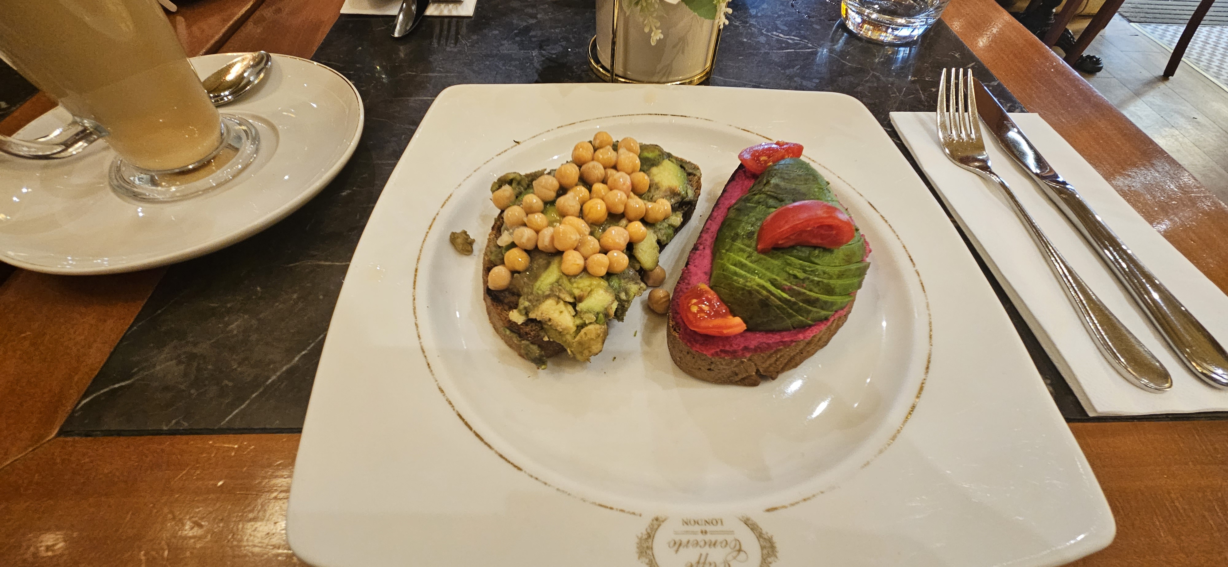 > I ordered a vegan tartine and a latte