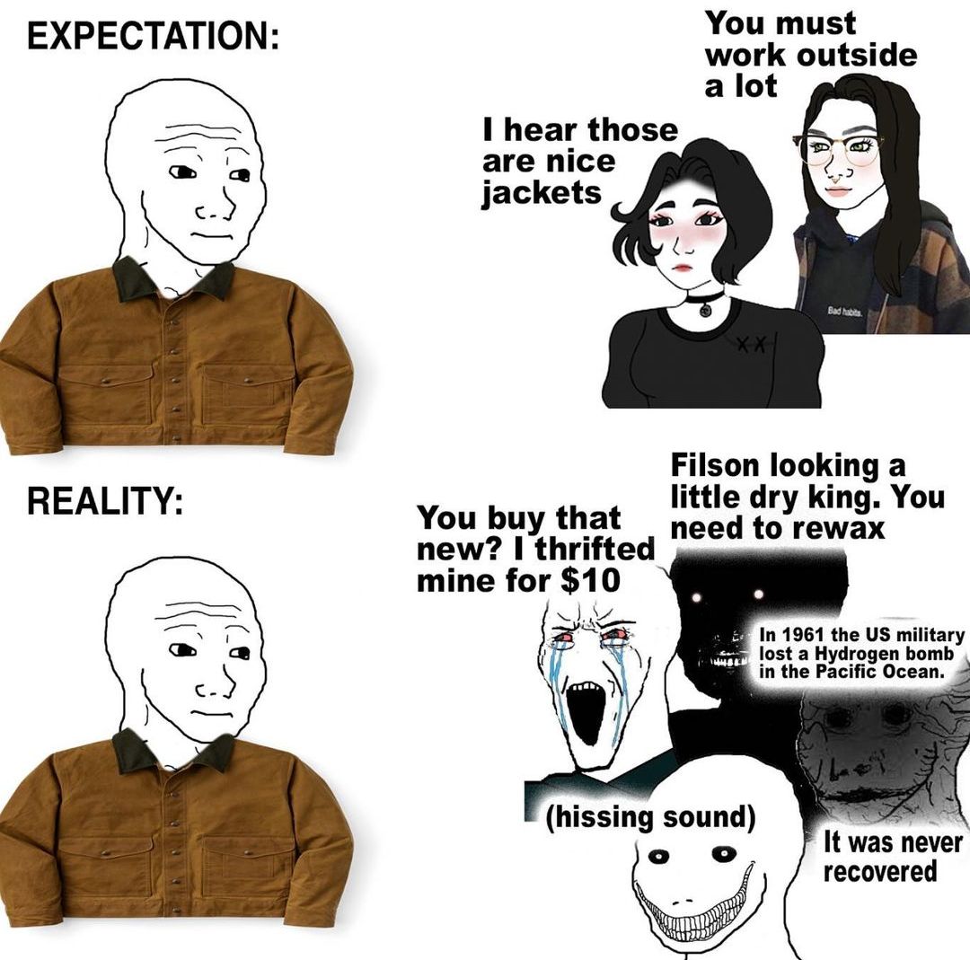 dr. coconut melon, phd joined in and replied with this 2 years ago , 31 minutes later[^] [v] #1,264,284 dr. coconut melon, phd double-posted this 2 years ago , 11 seconds later, 32 minutes after the original post[^] [v] #1,264,285 dr. coconut melon, phd triple-posted this 2 years ago , 10 seconds later, 32 minutes after the original post[^] [v] #1,264,286 dr. coconut melon, phd quadruple-posted this 2 years ago , 19 seconds later, 32 minutes after the original post[^] [v] #1,264,287 boof joined in and replied with this 2 years ago , 5 hours later, 6 hours after the original post[^] [v] #1,264,294 the pic looks similar to what I have but it is not waxed, and they call it a barn coat. you wear it in and around your barn. I would also wear it if I had to take someone out behind the barn.