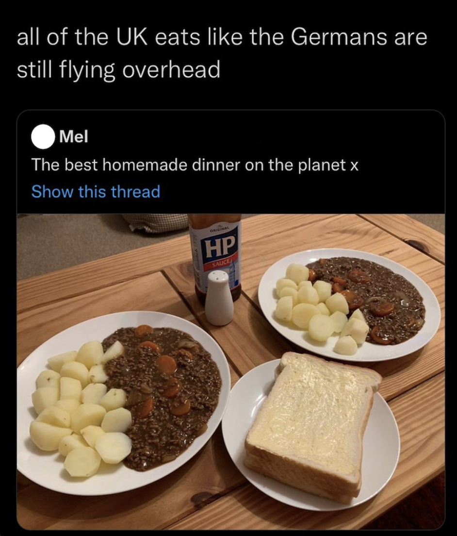 Erik !saAqdaazn2 joined in and replied with this 2 years ago , 1 hour later, 5 hours after the original post[^] [v] #1,276,566 That's mince and potatoes which is a Scottish dish and can be delicious.