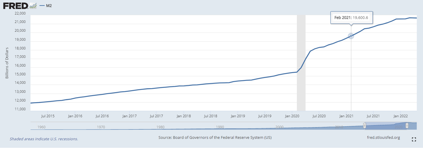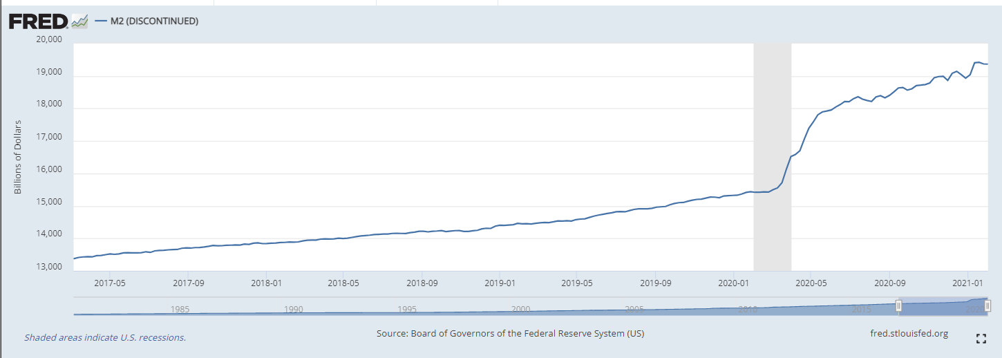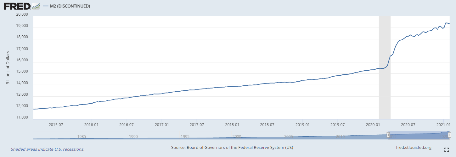 I can see where it's defined differently, but I don't see where they canceled it because the original M2 was too high. Are they cooking the books to artificially lower the M2 stat? If that were the case I'd expect the new M2 to be lower than the old one but for 2020 and 2021...it really isn't. For example, in the discontinued M2, the November 30 2020 M2 figure 18,866.4, and the new M2 November 2020 figure is 18,949.3, about 80 points higher. So I don't get the significance of moving from one to the other here. > i won't try to argue with you about inflation, i've seen how that goes. you are a strict CPI worshipper.