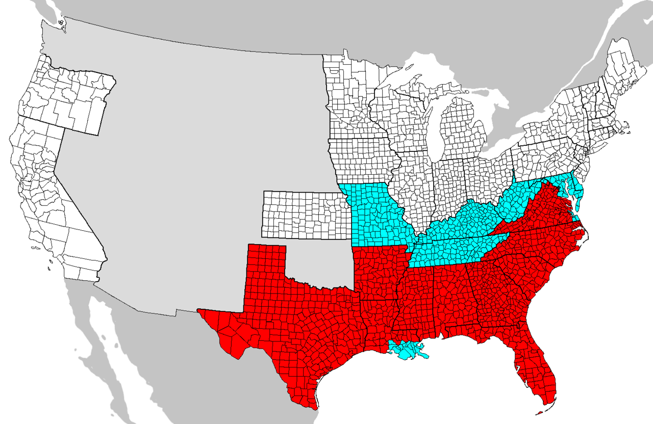 The blue areas to the north stayed loyal to the union, and were not subject to the proclamation.