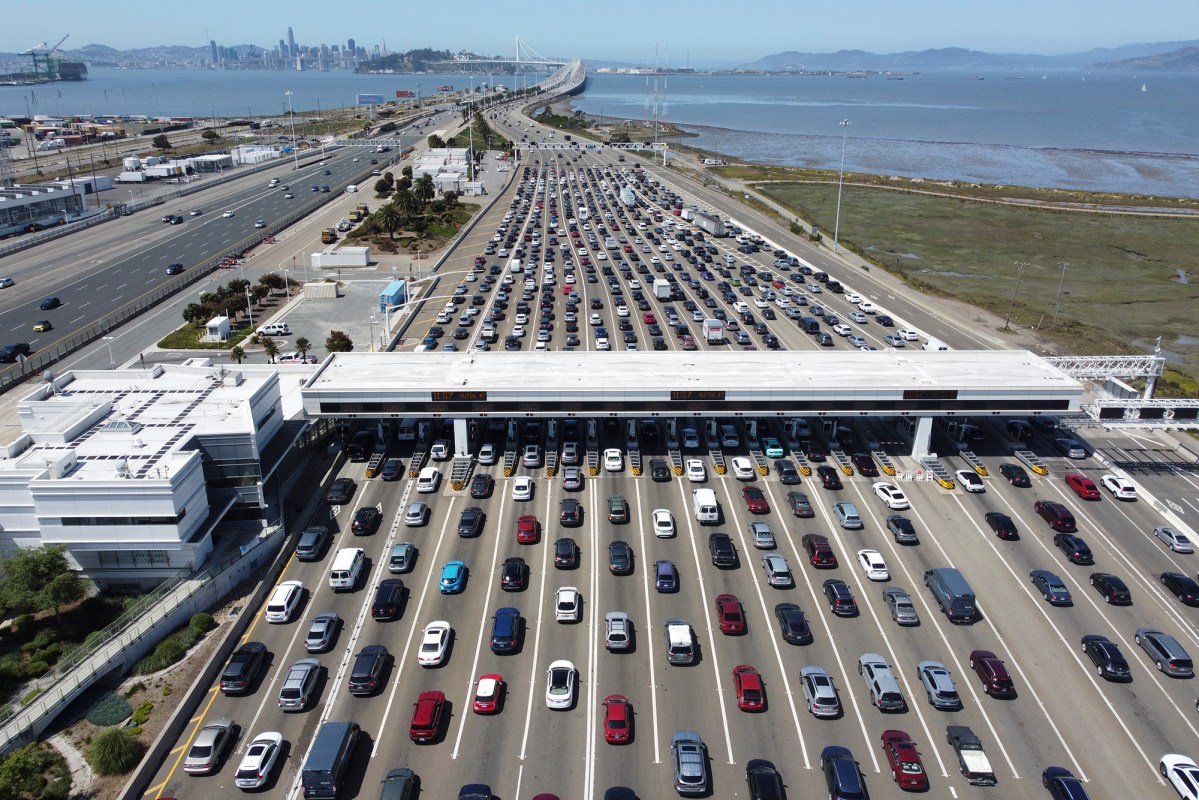 What I don't get is how there's like 80 lanes going one way and three (way on the left) going back the other way. I guess they change the lane directions based on demand?