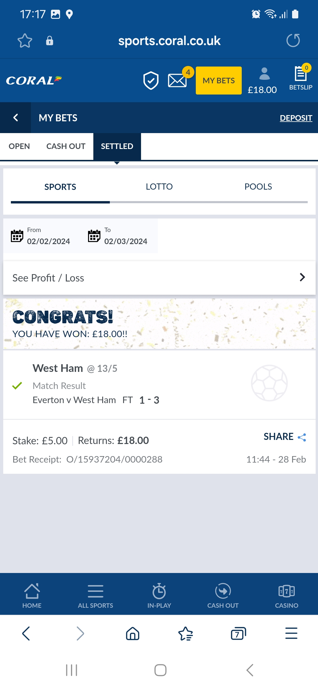 > Bet placed.