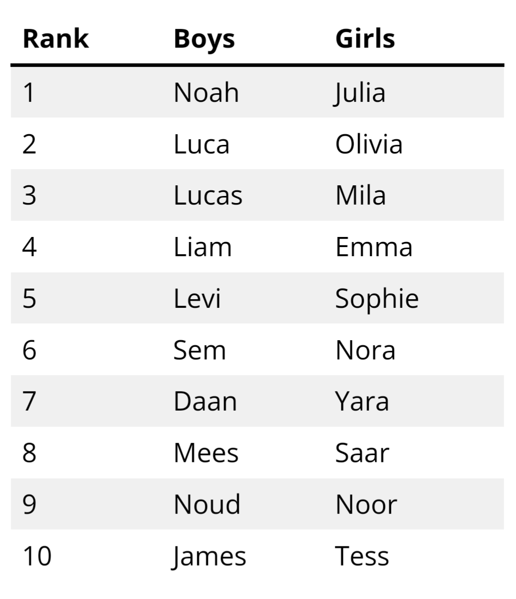 Jan is the most popular boys name in Flevoland