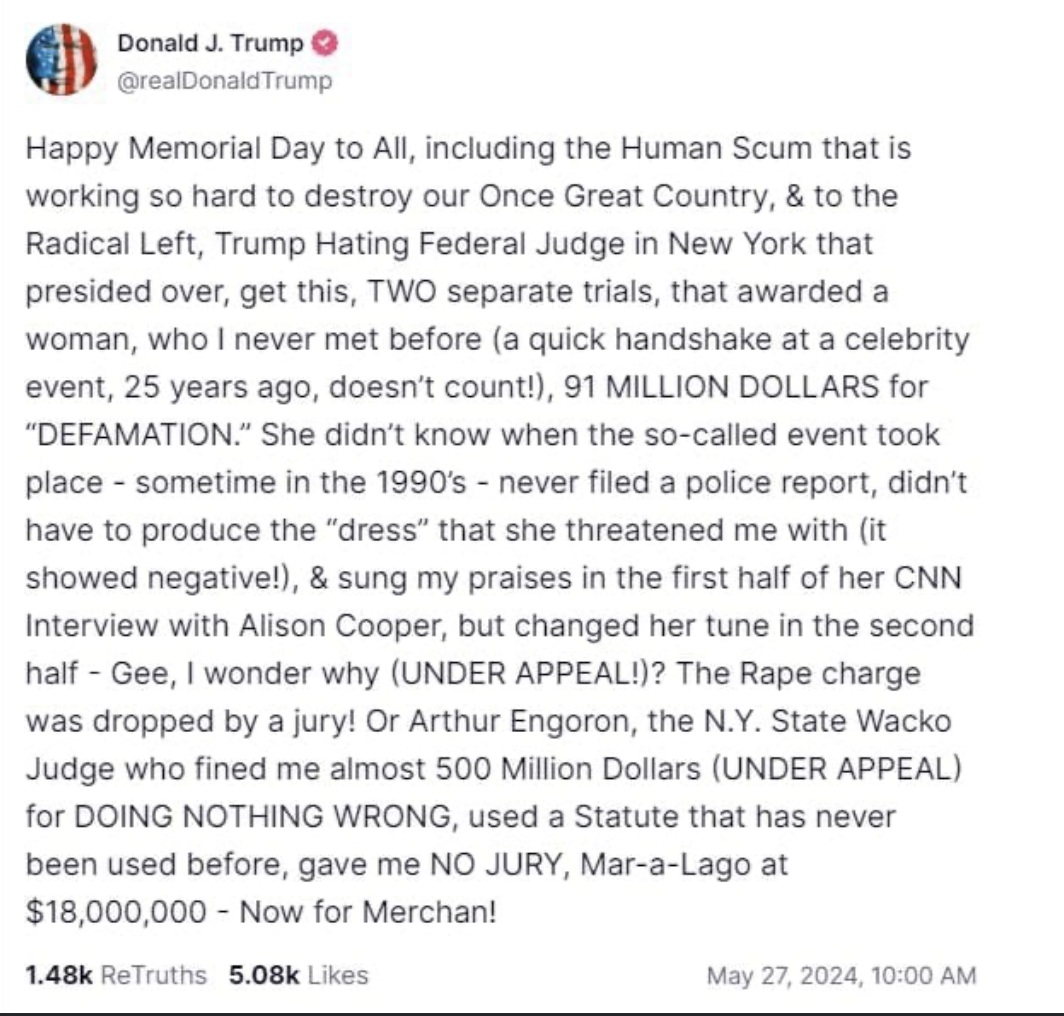 What's wrong with including human scum in his Memorial Day congratulations? It's the Christian thing to do. Biden didn't even mention human scum in his message, let alone congratulate them. Just more marginalisation from him.