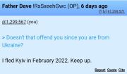 Father Dave !RsSxeehGwc replied with this 1 year ago, 5 minutes later, 4 hours after the original post[^] [v] #1,300,721