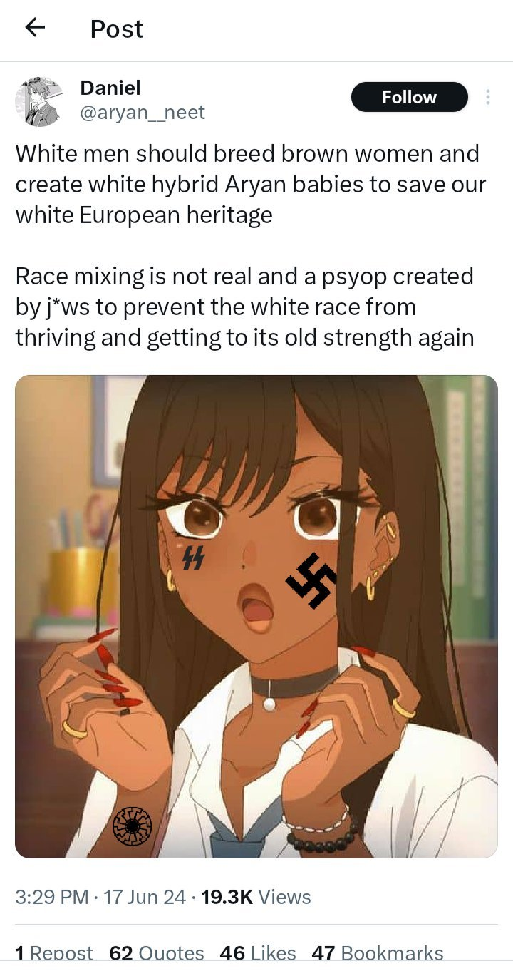 Every white supremacist has a nonwhite gf, also this is a guy trolling and you should spend less time on twitter.
