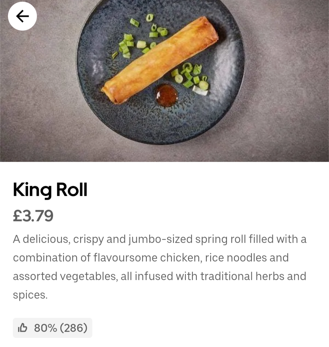 Full details of infusions. Details of the oils the roll is fried in.