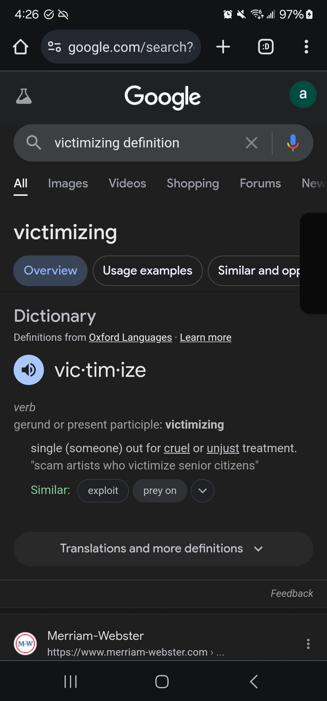 What does it mean to victimize someone?