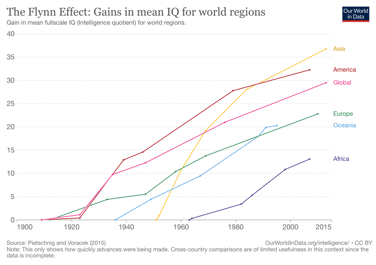 By the way, also look up the reverse Flynn effect. You might find it quite interesting.