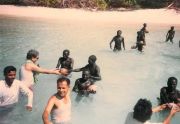 They set up a mock village where they pretended to be Natives with spears and he fought them off. In his diary he wrote that the tribal island was one of Satans last strongholds in the world