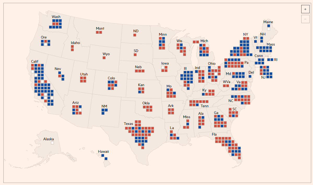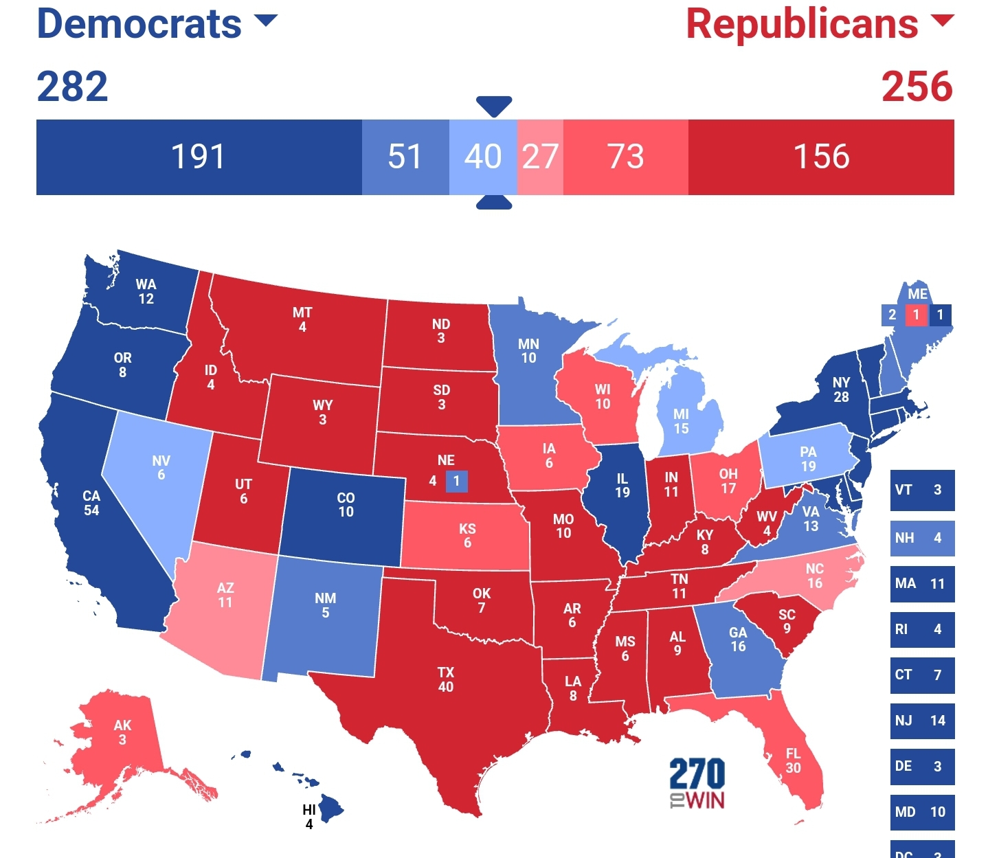 I was tempted to have them both Republican, thinking of 2016, but it felt unrealistic. I remember they both went Dem last year so I picked one at random to switch!
