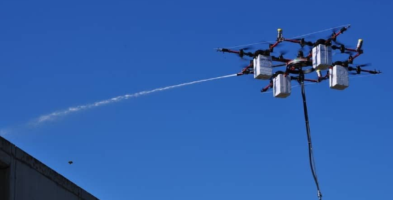 So what if we have drones dragging this crazy long hose to fight forest fires?