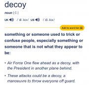 Monopoly money isn't going to throw them off his track, it doesn't fit decoy by any definition. Why do you have such a hard time with the definitions of words?