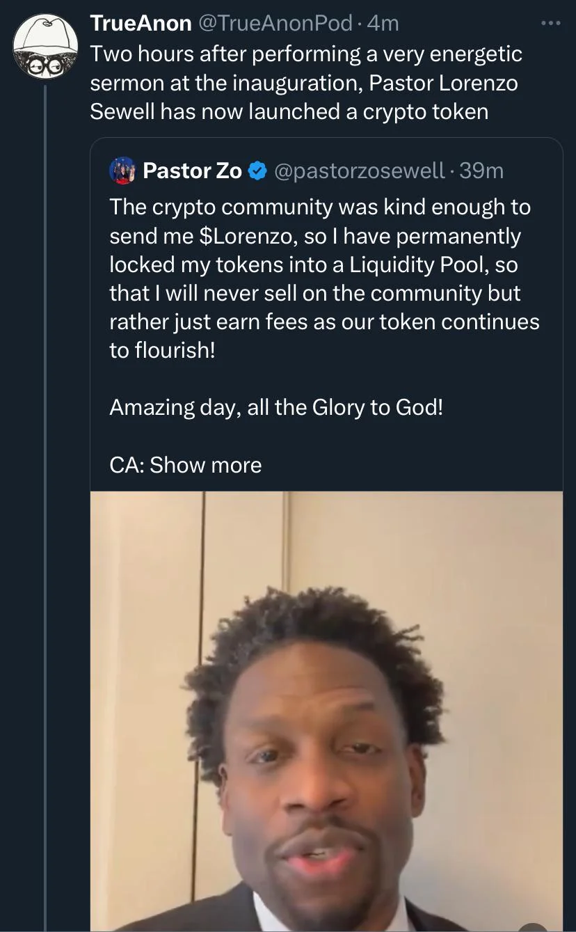 Kook !!rcSrAtaAC (OP) replied with this 1 year ago , 2 minutes later, 7 hours after the original post[^] [v] #1,341,917 The cringy black pastor just dropped a meme coin as well