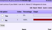 Anonymous A started this discussion 1 year ago #123,221 Just curious if you think I can do it. About 21 kilograms to lose.