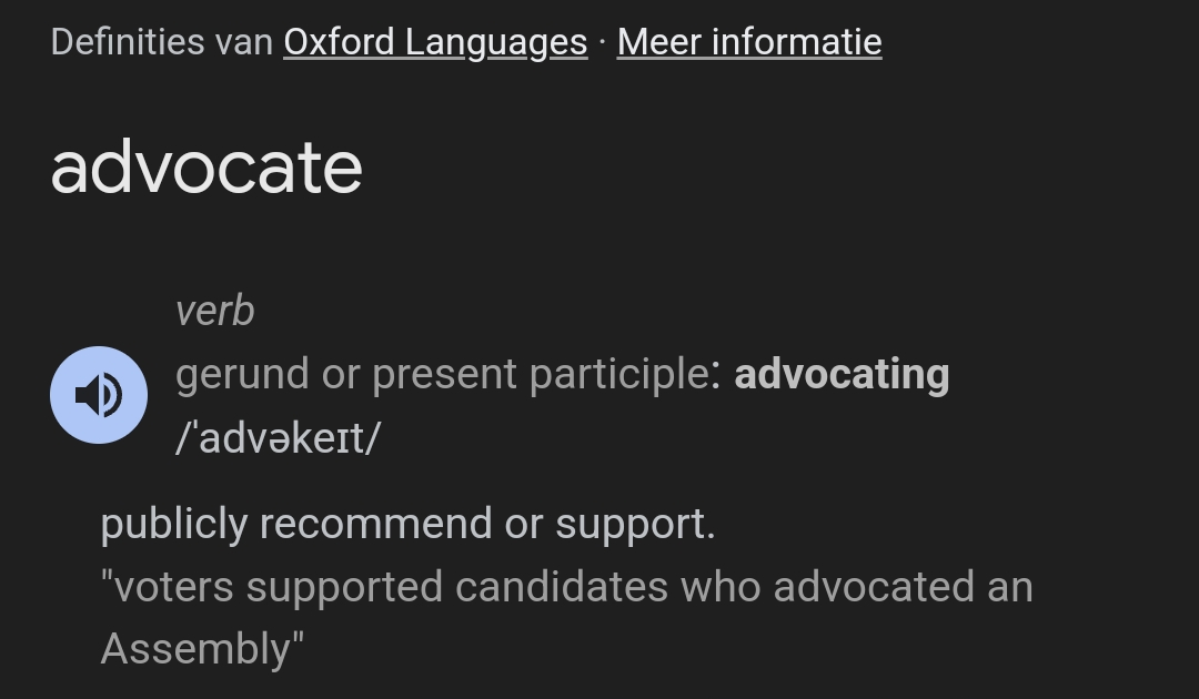 > It's the dictionary definition of the verb 'to advocate', as in "to support or argue for (a cause, policy, etc.); to plead in favor of". > > 'Advocacy', as used by Dave ITT, doesn't have the inflated meaning you're imagining. A few replies earlier Dave said "I've been saying that for 3 years", so the meaning of his later use of 'advocating' is clear. Taking issue with it is autism or poor English. Given that it's Dreamworks, probably both.