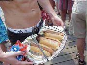 Translated. Barbie Girl uses Bratwurst as a Dildo.