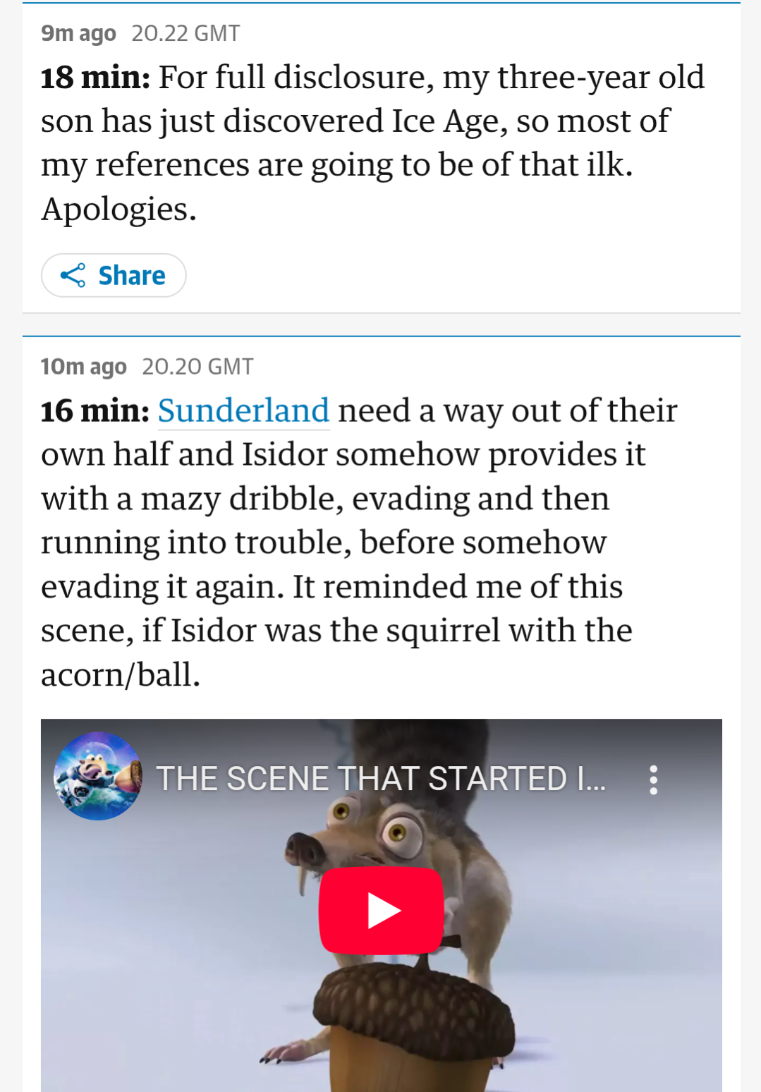 So, it's a brief, lighthearted aside in a live blog about a football game. Seems pretty harmless.