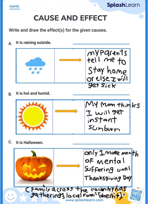 Topic: I filled in a kid's worksheet on cause and effect