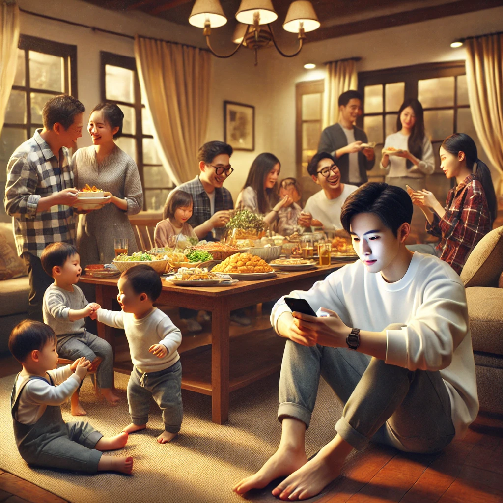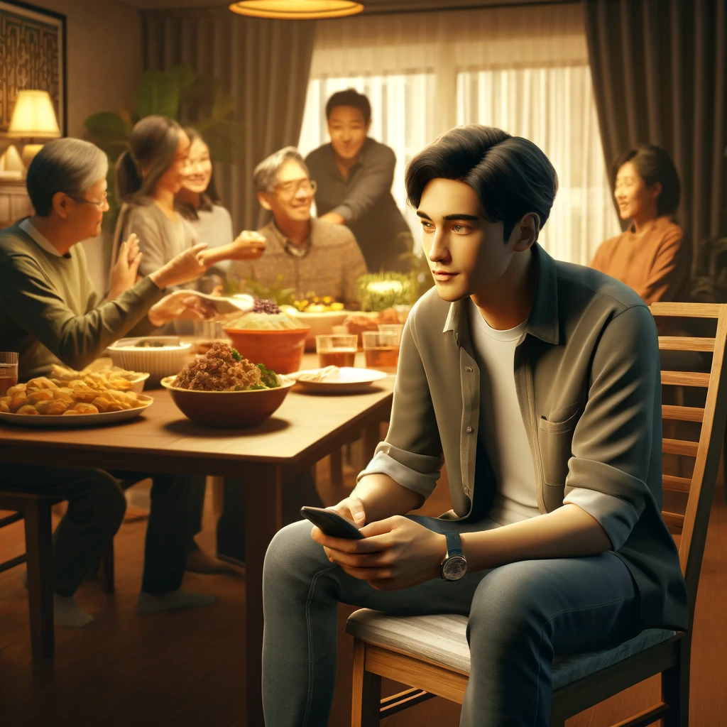 No. I can't find a picture of an Asian family gathering that has 1 person sitting all alone in a corner scrolling their phone.