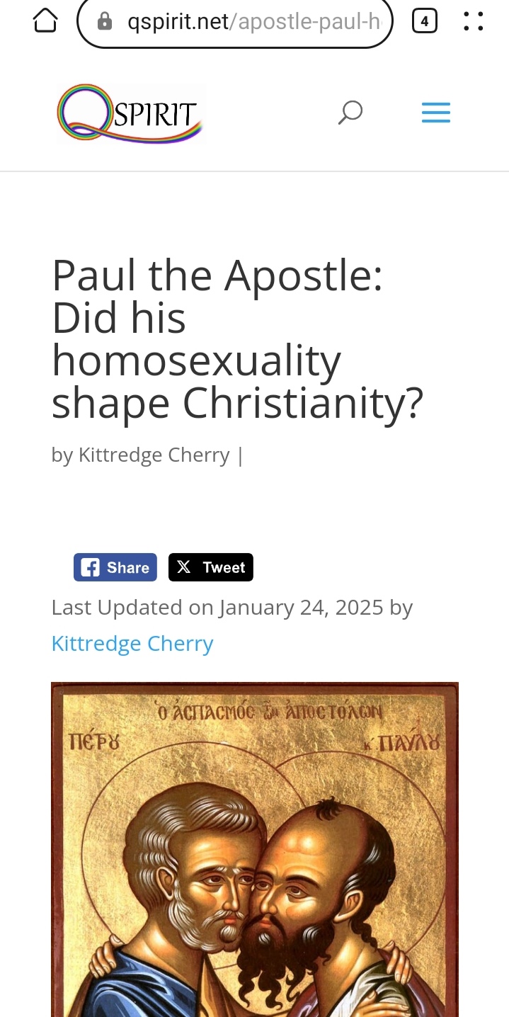 This strikes you as an academically rigorous website does it? Did you bother to click on renowned scholar "Kittredge Cherry" and check out his/her (?) other esteemed works on that ludicrous site, all of which take as an inarguable axiom (it's not even a question to be investigated; it is given as an established fact) that every single Christian saint was gay?