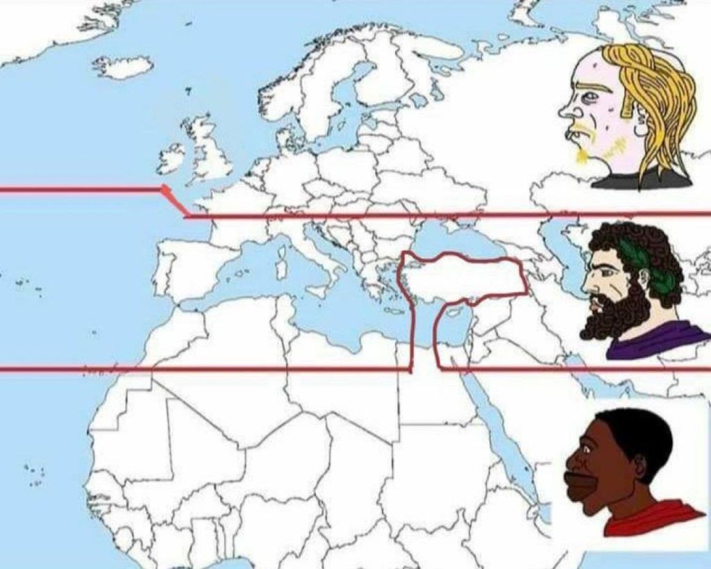 Look at the image I posted again. It shows Iraq in it in the middle as the chad. Because once they were before Arabs ans Islam fucked the near east up forever.