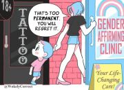 Telling people that if you feel like a different gender (and they'll never explain what feeling like a gender even means) that you need to solve that with the help of big pharma.