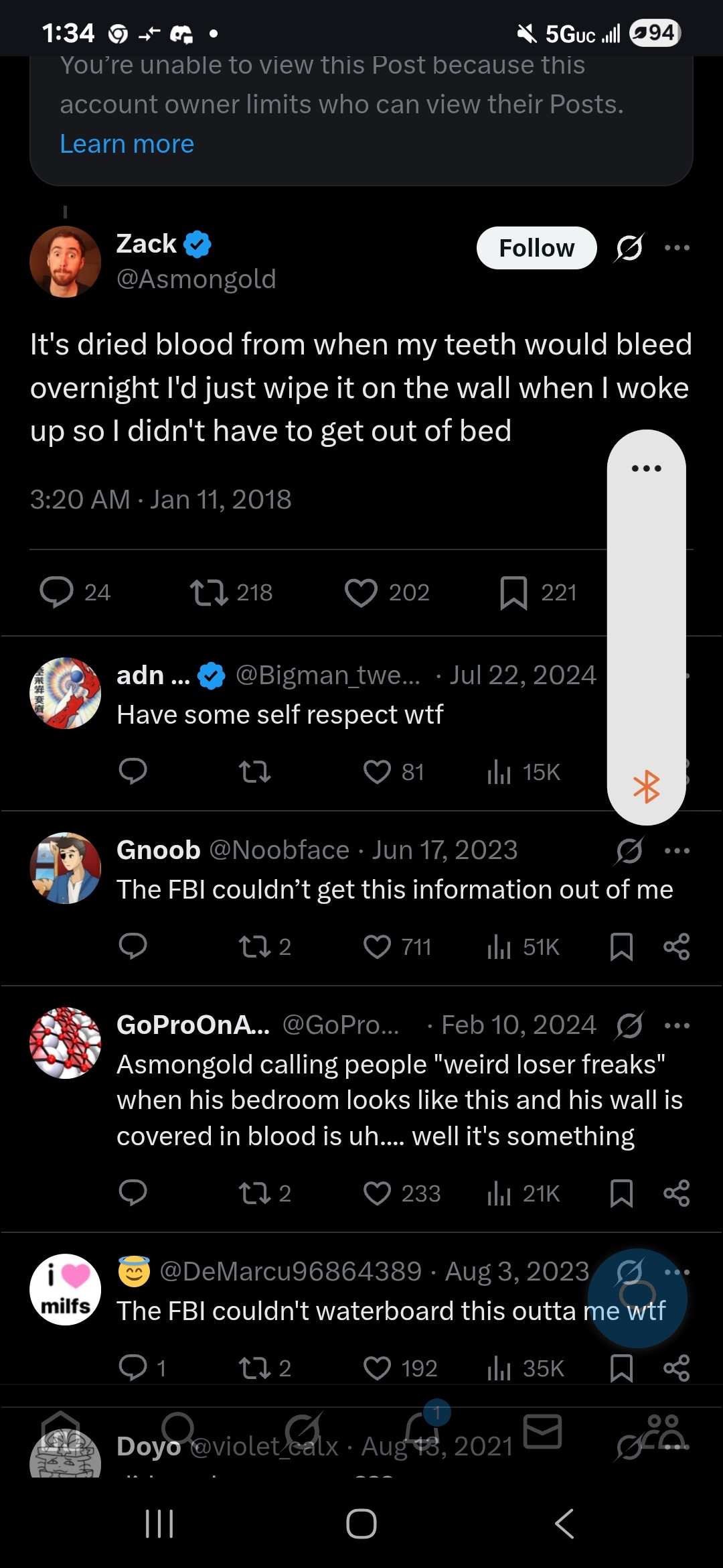https://old.reddit.com/r/Asmongold/comments/1n2fakf/what_is_dudes_power_level/ Kook !!rcSrAtaAC joined in and replied with this 5 months ago , 11 minutes later[^] [v] #1,386,179 They seem like a crazy person, what else is thereto say? Also the street preacher with a supreme backpack is a delusional douche