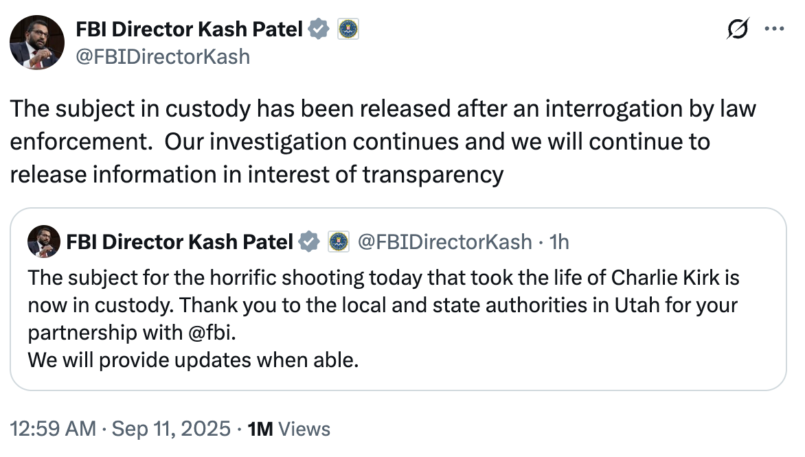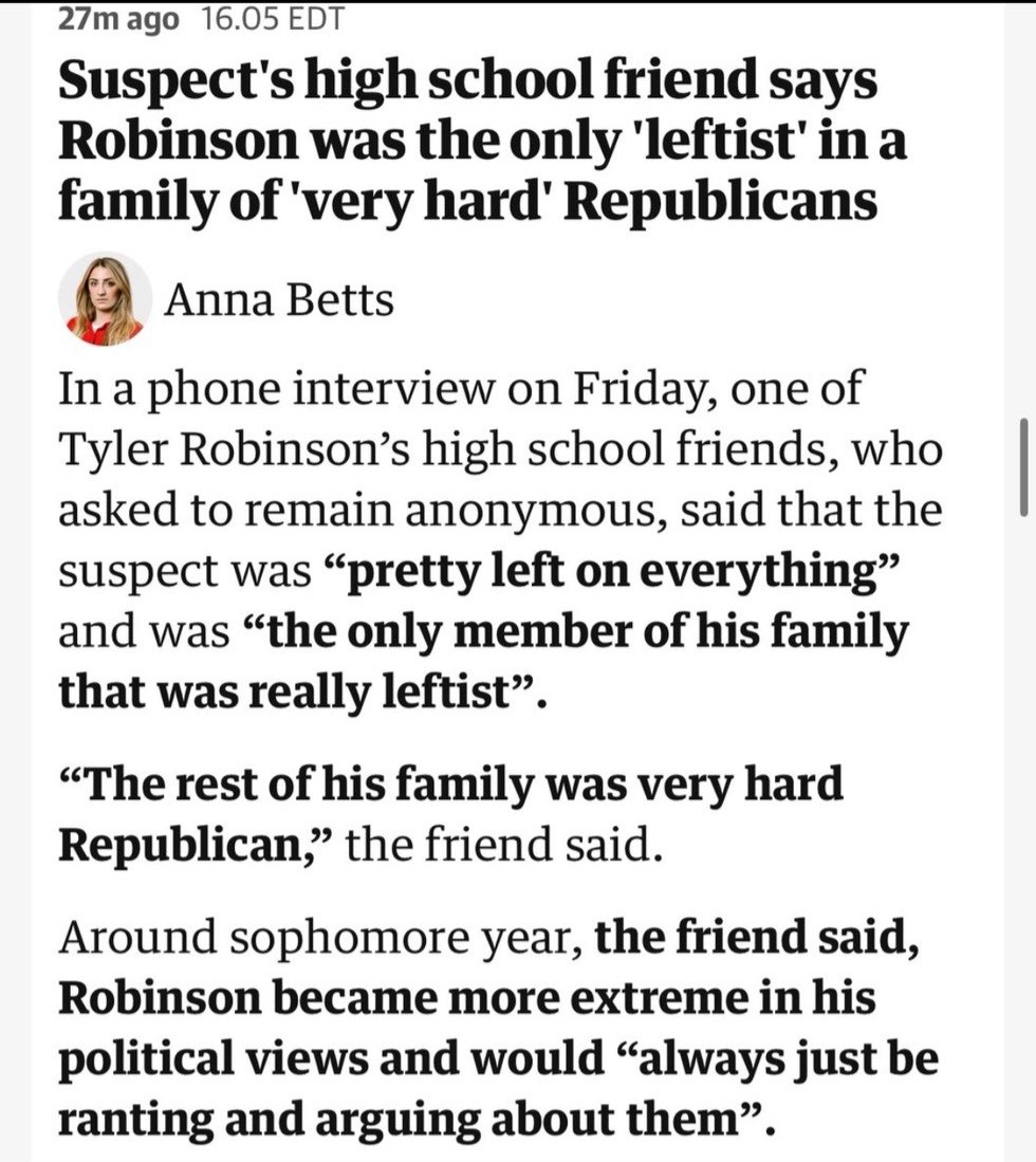 It seemed pretty obvious to me it wasn't going to be a groyper. Even before the trans roommate thing was verified to be true, it felt vanishingly unlikely Kirk would be taken out by someone who thinks he isn't extreme enough as opposed to someone on the left who just thought he was hateful/evil/fascist/etc.
