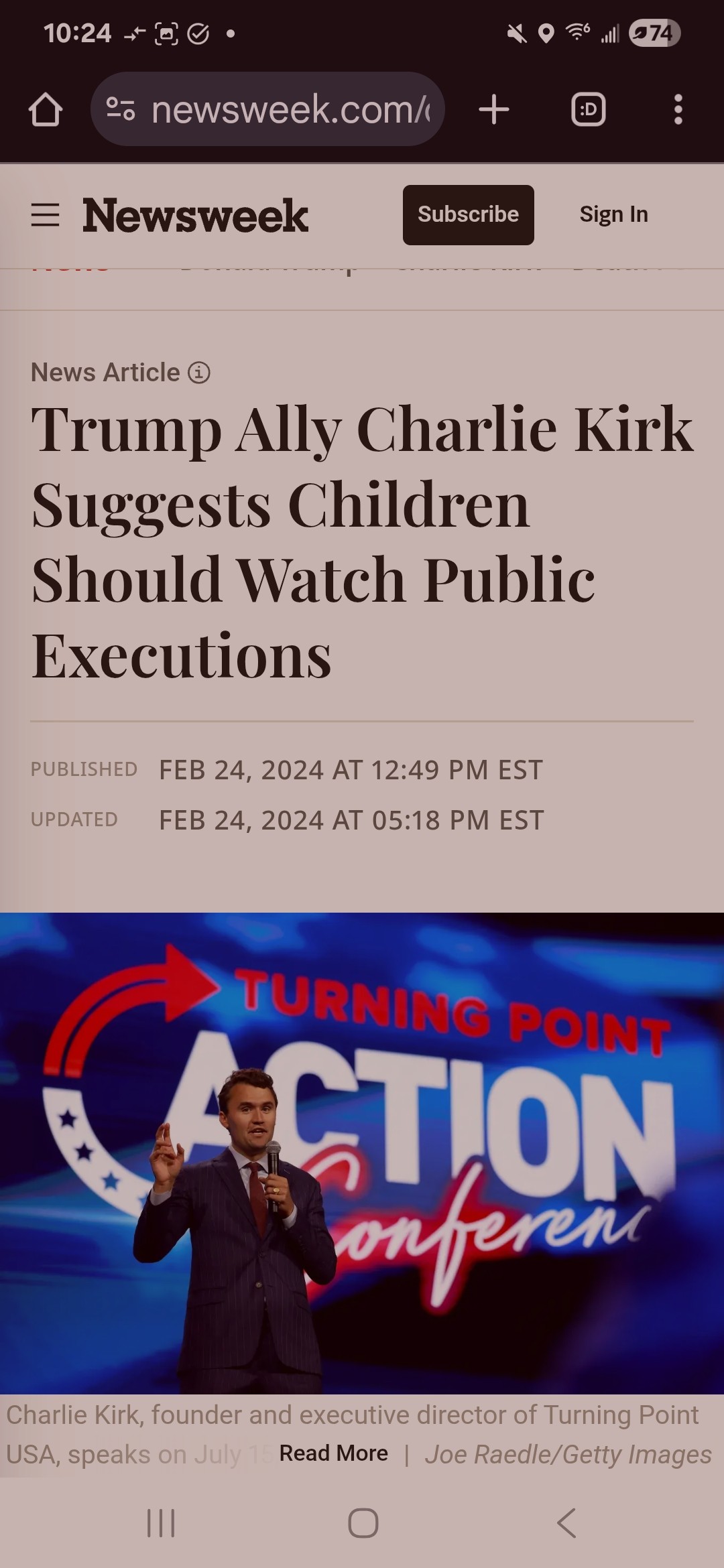 According to a 2024 NBC News report, Kirk was relatively secular regarding LGBTQ rights in the United States in 2018, but shifted toward more conservative stances.