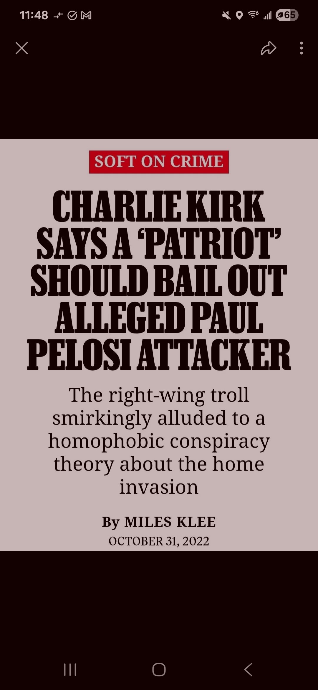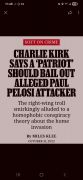 The speech also saw Kirk condemn the Civil Rights Act of 1964, calling its passage a "huge mistake" and alleging that it had created a "permanent DEI-type bureaucracy" In a 2022 episode of his podcast, Kirk called for a "patriot" to bail out of jail the man who broke into Nancy Pelosi's house and attacked and tried to murder her husband with a hammer In a 2022 episode of his podcast, Kirk called for a "patriot" to bail out of jail the man who broke into Nancy Pelosi's house and attacked and tried to murder her husband with a hammer In a 2022 episode of his podcast, Kirk called for a "patriot" to bail out of jail the man who broke into Nancy Pelosi's house and attacked and tried to murder her husband with a hammer