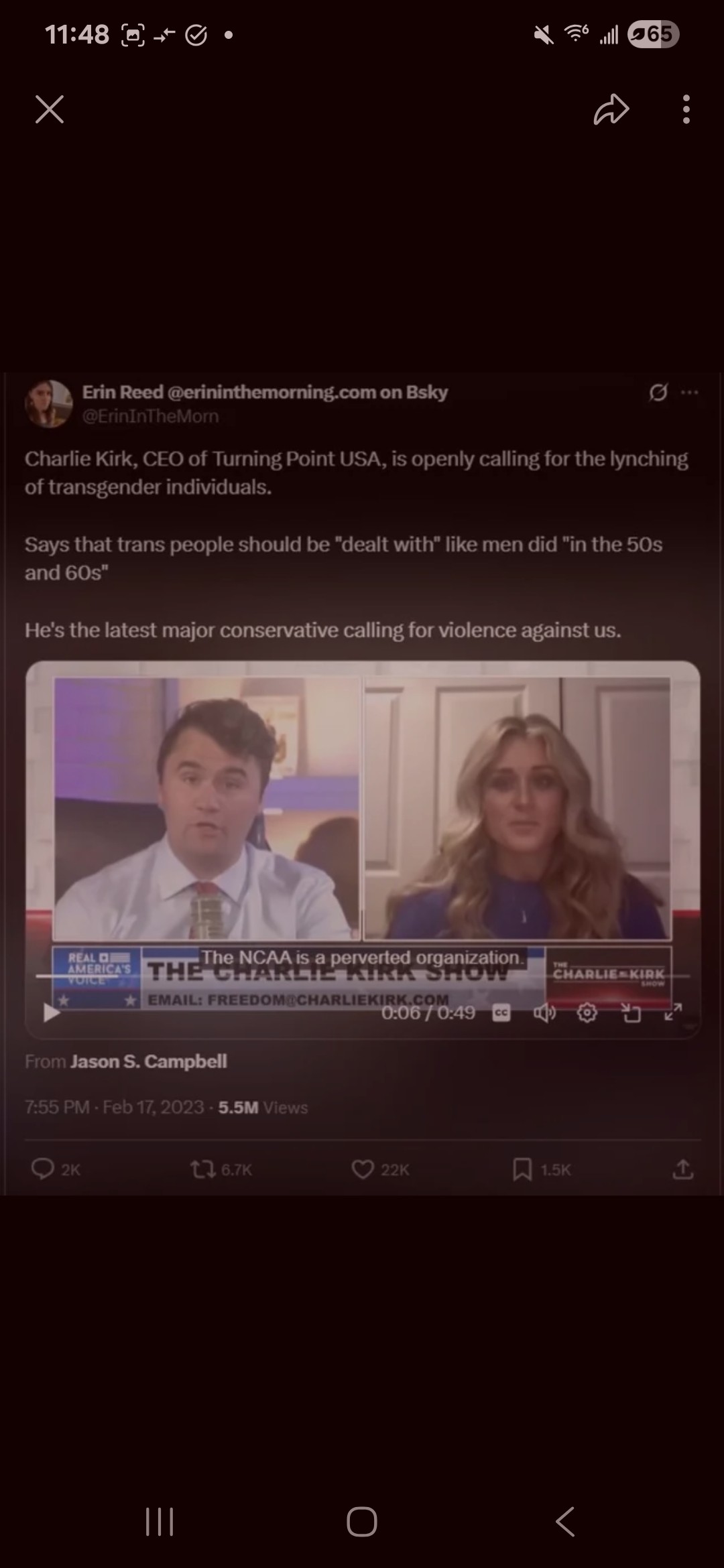 No I’ve just seen the videos where he has trillions of clips of 20 year old college kids where he cut out 30 seconds of the argument made them seem like an idiot, and thousands of people made fun of the college student in the comments.