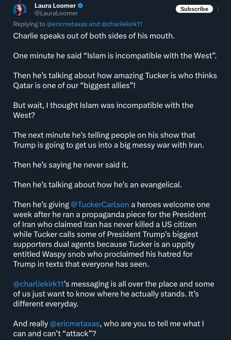 It's more likely that the shooter was someone who disagreed with Charlie Kirk than agreed with them. What makes more sense, murdering someone because you disagree with them and think they're full of hate or murdering them because you agree with their opinions but think they're not going far enough?
