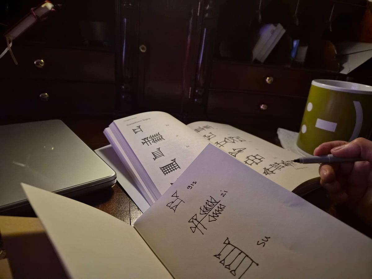Topic: Learning Sumerian with library books.