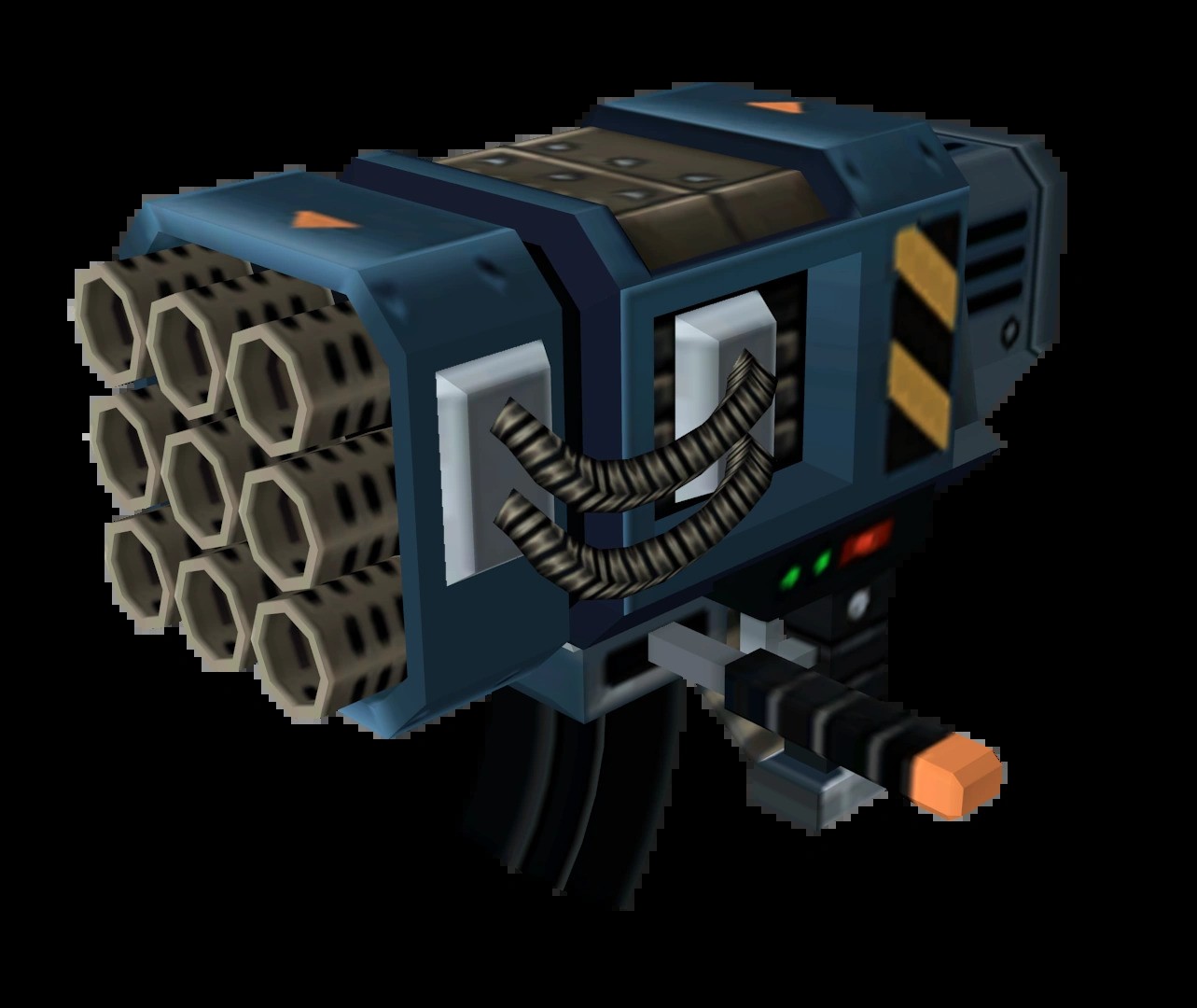 My favorite overloaded gun is Reggie’s shotgun, which consists of two double-barreled shotguns welded together with their barrels cut at a slant to maximize spread.