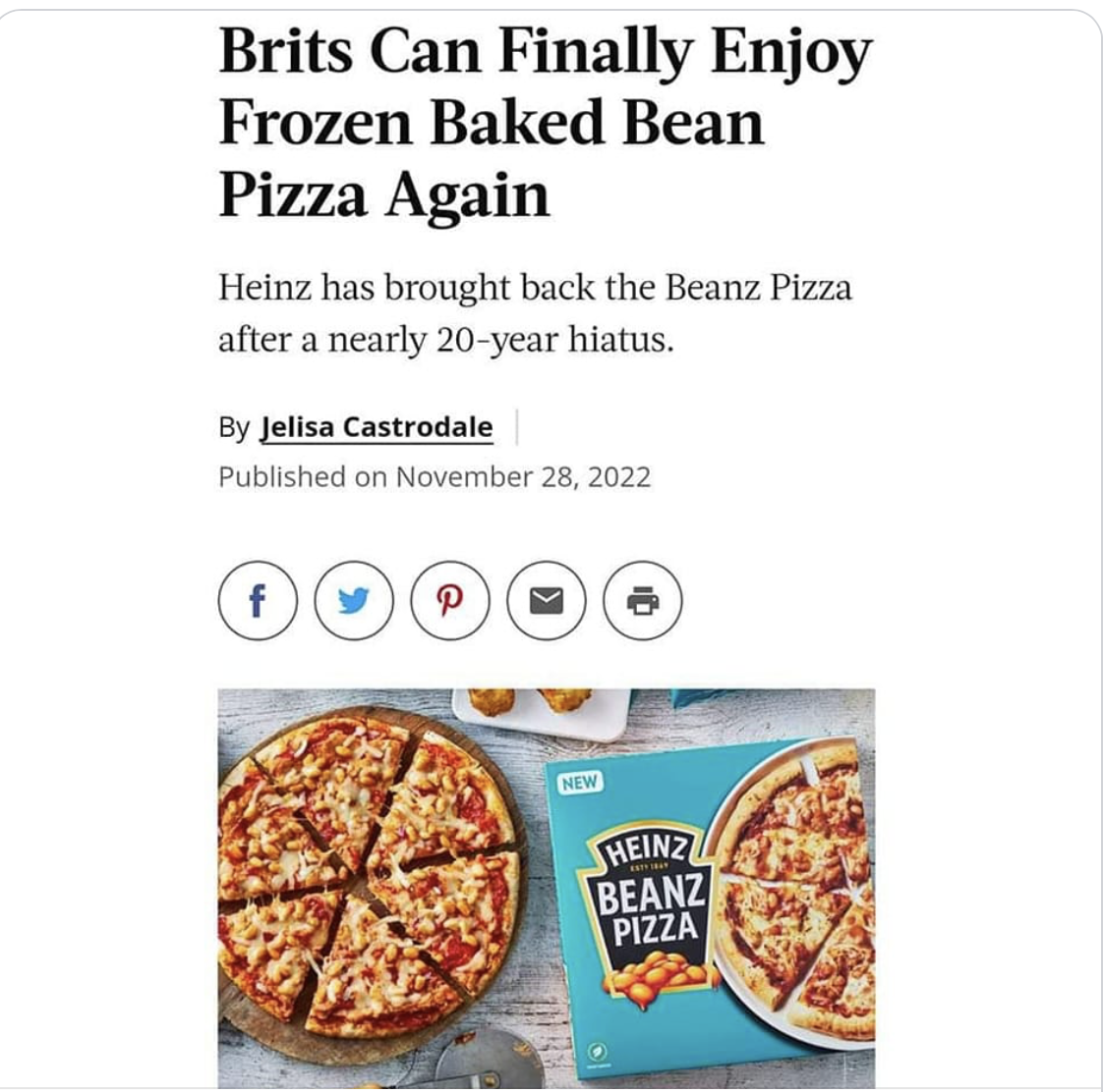 Might even have a cheeky baked bean pizza at Christmas, after the chicken roast (unseasoned, of course!)