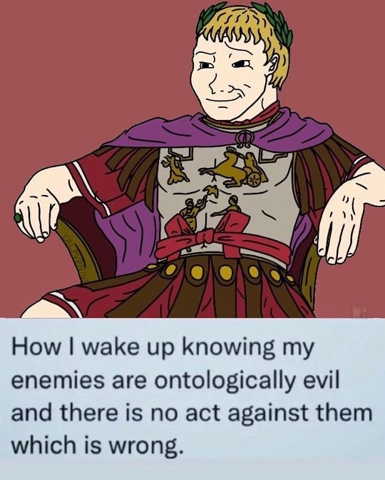 When we fought the Nazis, did we sit around and argue to them and hear them out? No, we firebombed Dresden. We had to humiliate these people, we need to make these people suffer a terrible pain. That’s the only way to fix it.