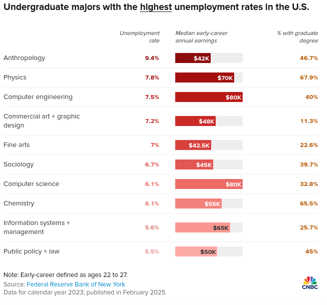 Everything in the economy can be reduced down to supply and demand. The majors that pay the most have the highest unemployment because everyone knows they pay well so everyone studies those majors and the supply of graduates exceeds the demand for new hires.