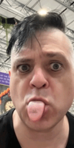 fifty-one year old man trying to look like a teenager from 30 years ago.