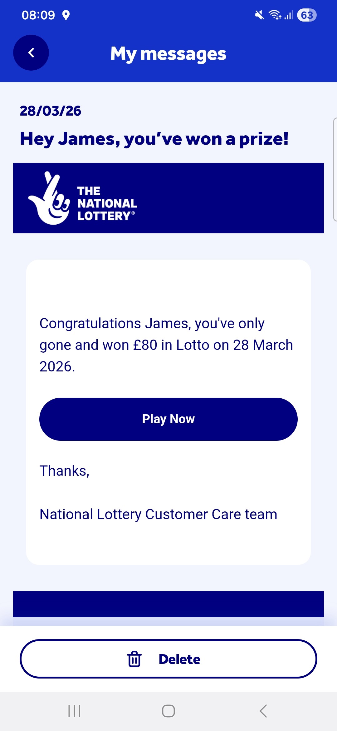 Topic: I won £80 on the lottery