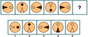 2 - the wheel spins anticlockwise and the dot and wedge alternate being black or clear