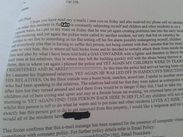 I prefer my old neighbours. Never had beef with them. They kept getting arrested for drugs though. My old flat was better. There is a shitty outdated code thing you have to type in to get into this block. Half the time it doesn't work.