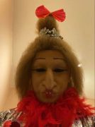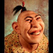 Looks like a tribute to Schlitzie, the pinhead who appeared in the movie Freaks
