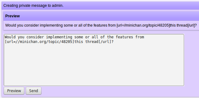 It's nice to have a standardised way of doing things sometimes. You don't know what your users will do with it. > No, what is previous may change between your writing the reply and submitting it. If someone posts a reply while you were writing yours you'd miss-cite. No, what is previous may change between your writing the reply and submitting it. If someone posts a reply while you were writing yours you'd miss-cite.