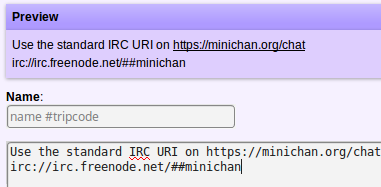 I'll look into the last two when I have the time and desire to work on the Minichan code. I've filed issues that you can track here. As always you should know that Minichan is open source, and if you'd any of the features to be included soon™ then you should contribute it yourself.