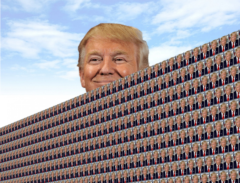 Would have been funnier if the wall was made out of copies of The Art of the Deal.