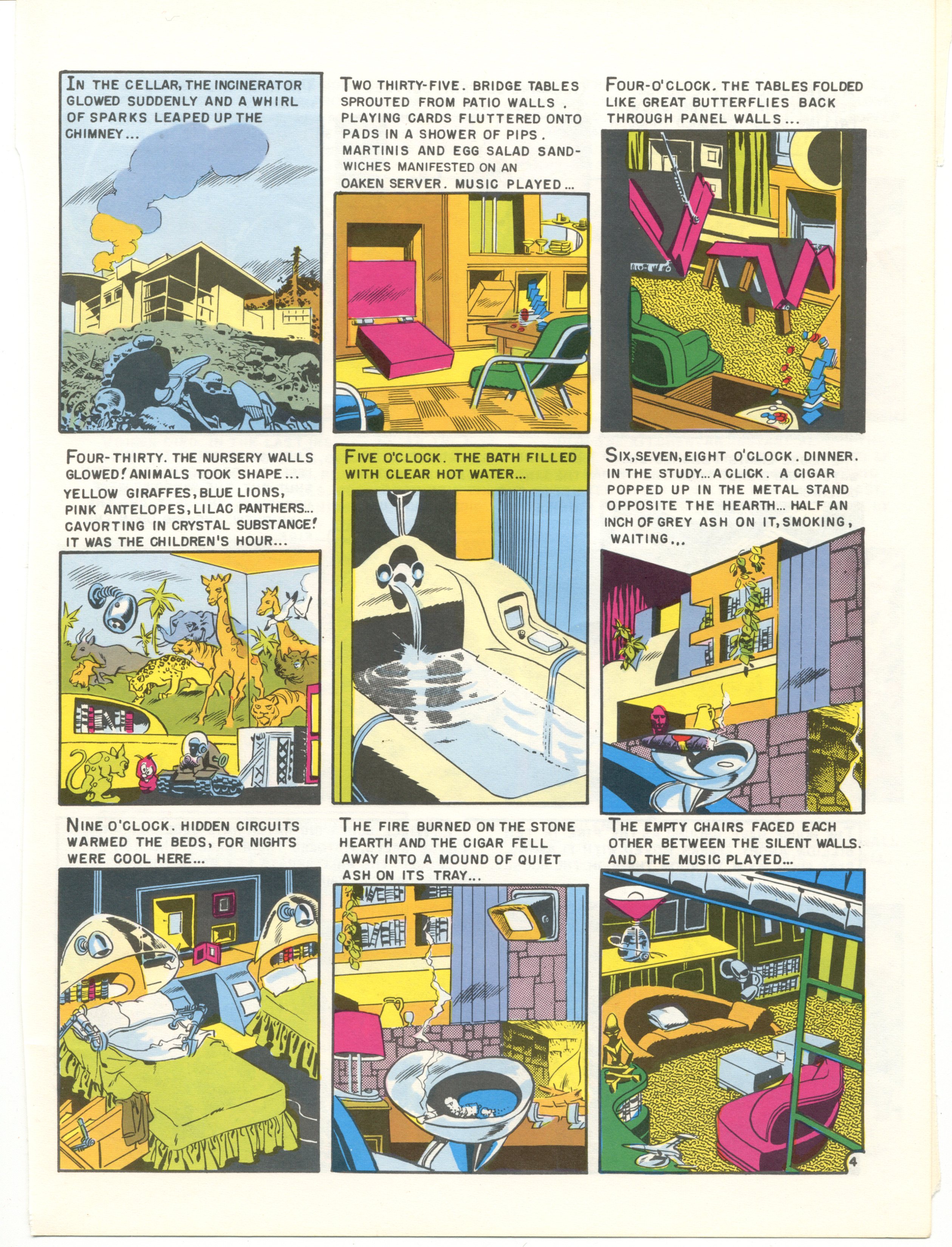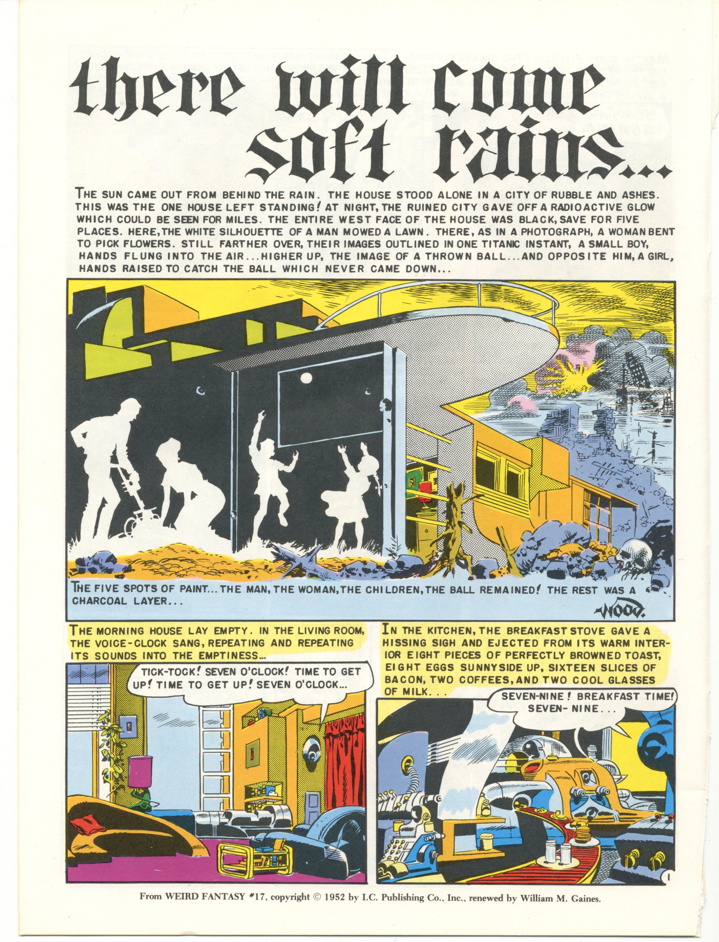 Anonymous A (OP) replied with this 9 years ago , 16 hours later, 1 day after the original post[^] [v] #777,149 Another Bradbury short: "There Will Come Soft Rains". Artwork by Wally Wood.