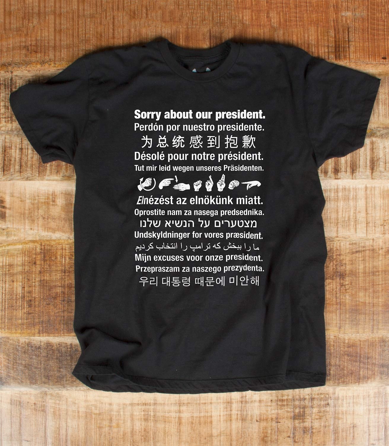 I found a T-shirt for you for when you travel overseas.
