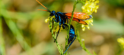 "Tarantula hawk wasps are relatively docile and rarely sting without provocation. However, the sting—particularly that of P. grossa—is among the most painful of all insects, though the intense pain only lasts about five minutes. One researcher described the pain as "...immediate, excruciating, unrelenting pain that simply shuts down one's ability to do anything, except scream. Mental discipline simply does not work in these situations."